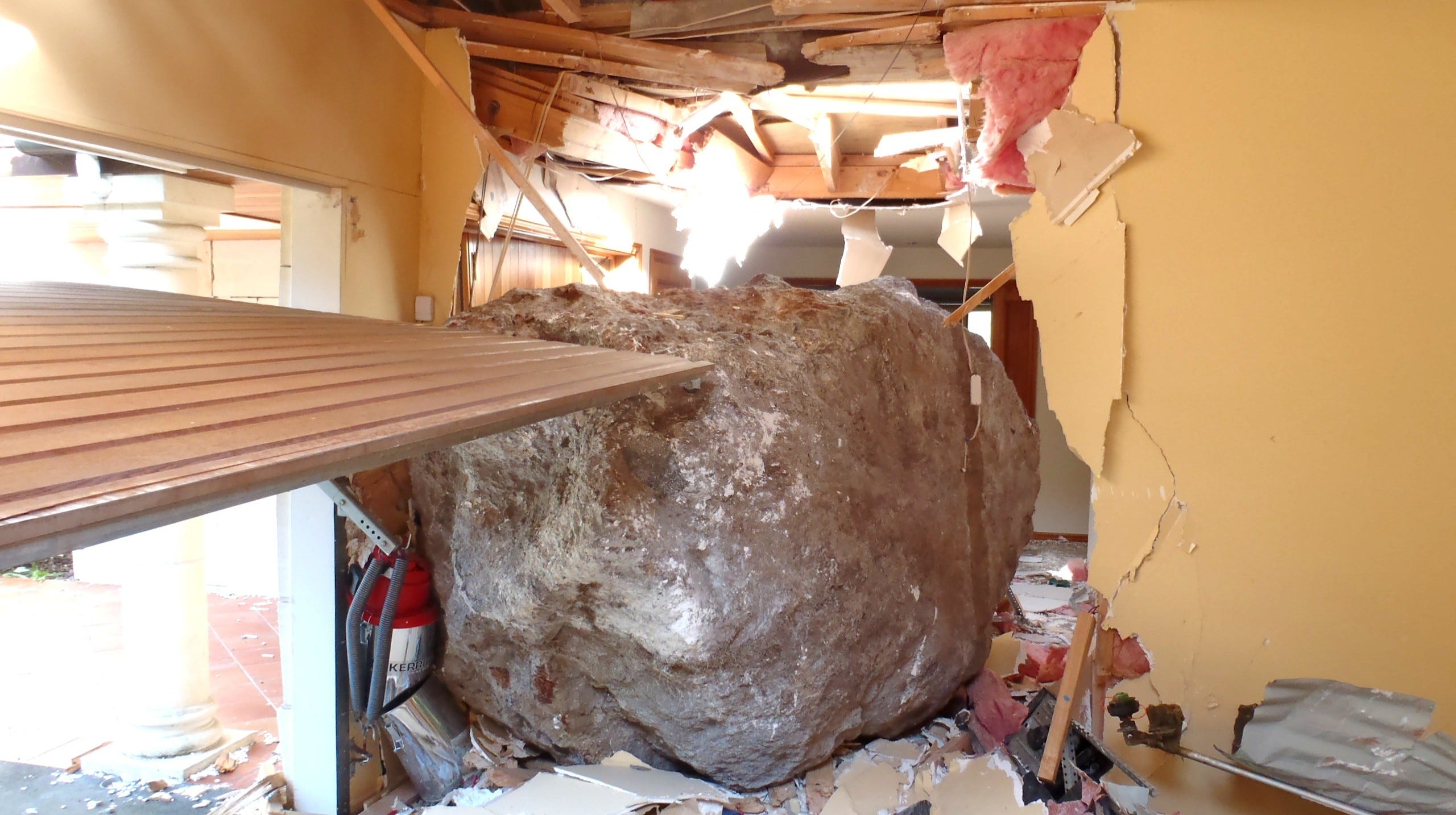 One of the more horrifying realities was the boulders — rocks that had torn loose from the Port Hills, hurtled down the slopes in 60 metre bounces and smashed their way into homes. In some cases, they went right through from one side to the other like cannon balls.